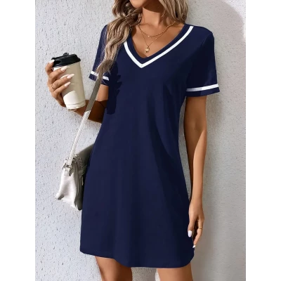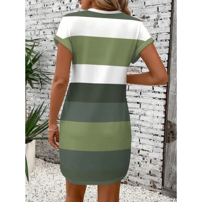 Women'S Summer Striped Crew Neck Knit Polyester Tunic Dress