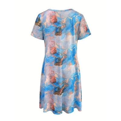 Spring And Summer New Elegant Fashion Scenic Print Pattern Casual Women'S Dress;