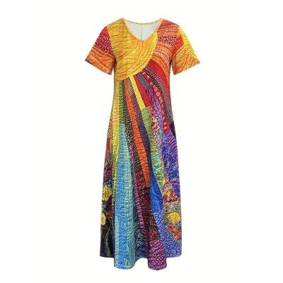 Summer Women's Fashion Printed Beach Holiday Style Long Dress (directed)