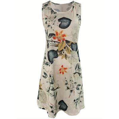 Elegant Women'S Sleeveless A-Line Dress with Floral Print And Square Neckline.