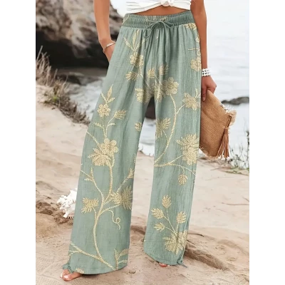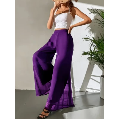 2-Piece Set Women's Solid Color Buttoned Deep V-Neck Sleeveless Vest Top & High-Waisted Wide-Leg Pants with Pocket Casual Set